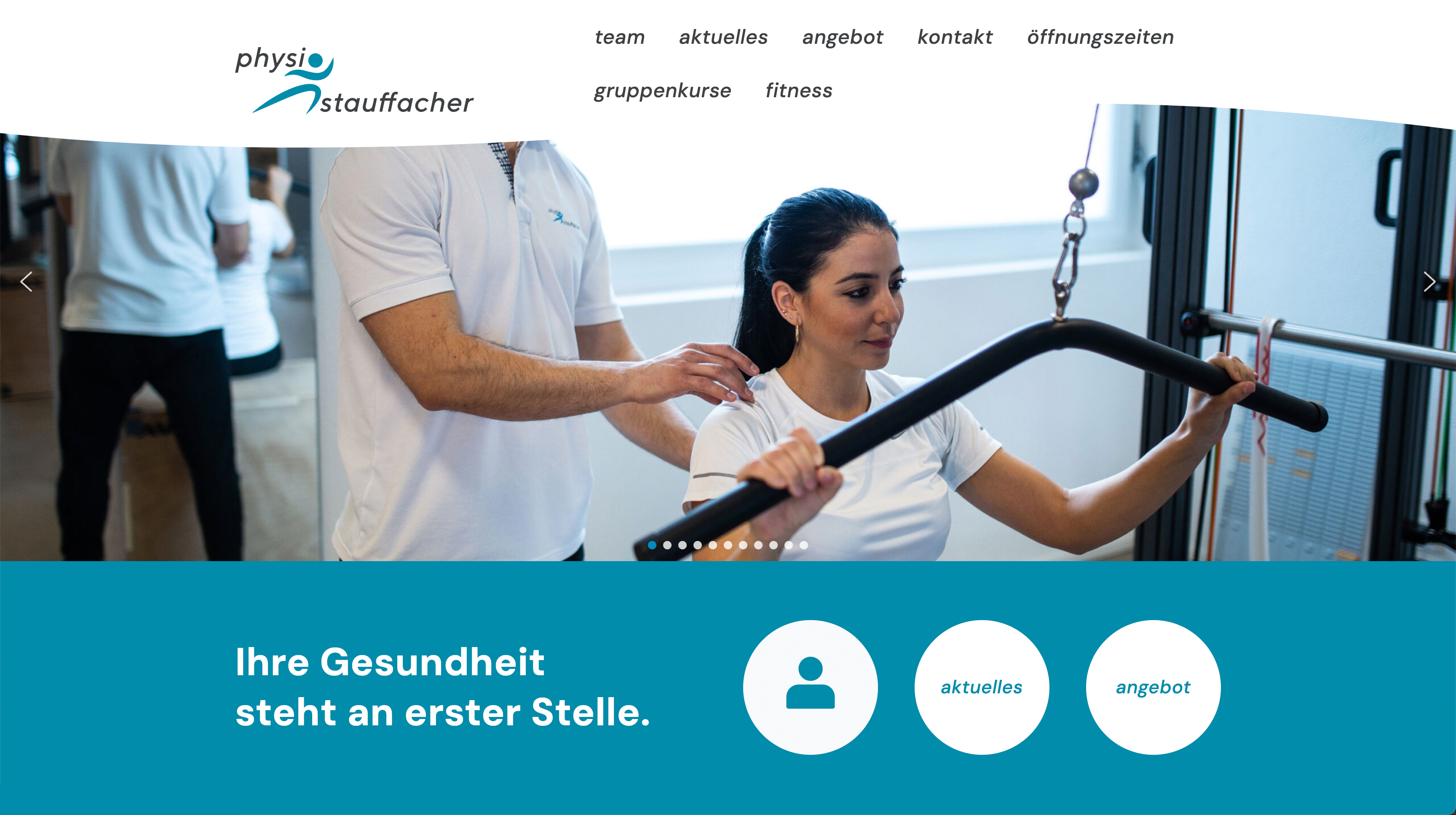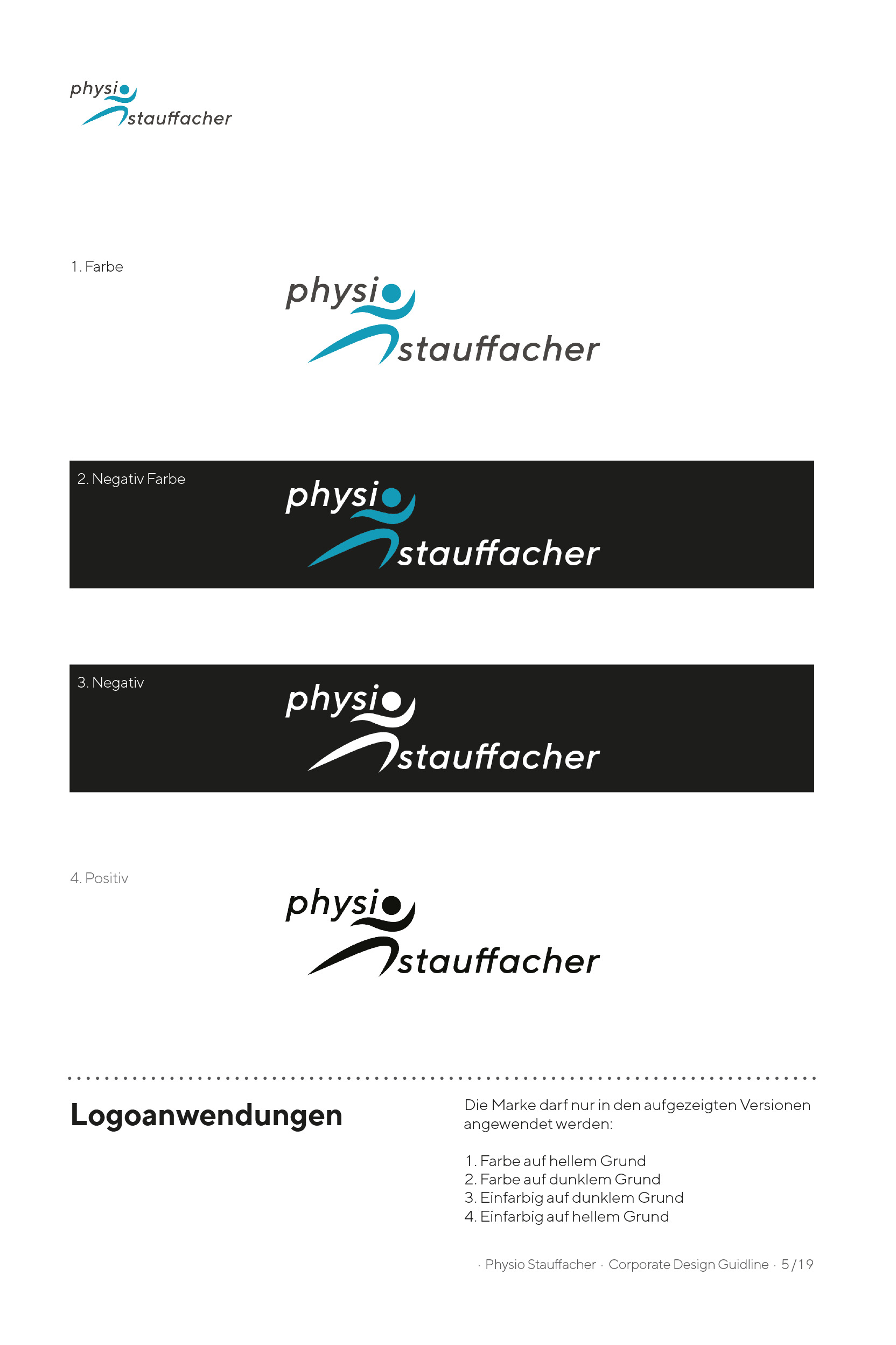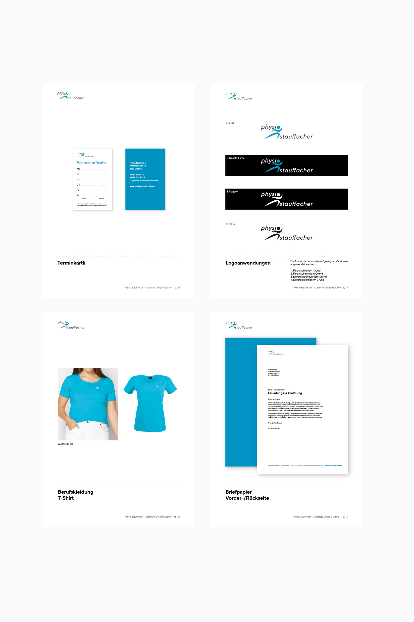 For Physio Stauffacher, a complete visual brand identity was created – from logo design, color and shapes to the definition of typography and visual language. Based on this, a holistic corporate design with clear guidelines was developed and consistently applied across web design, business cards and all communication materials. Project for Physio Stauffacher, 2020