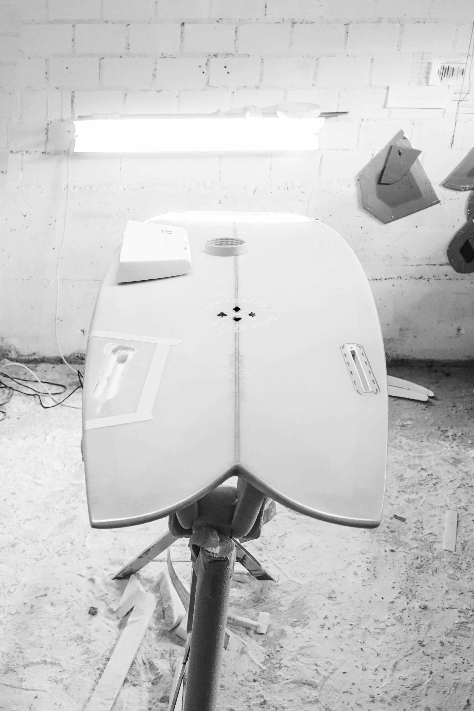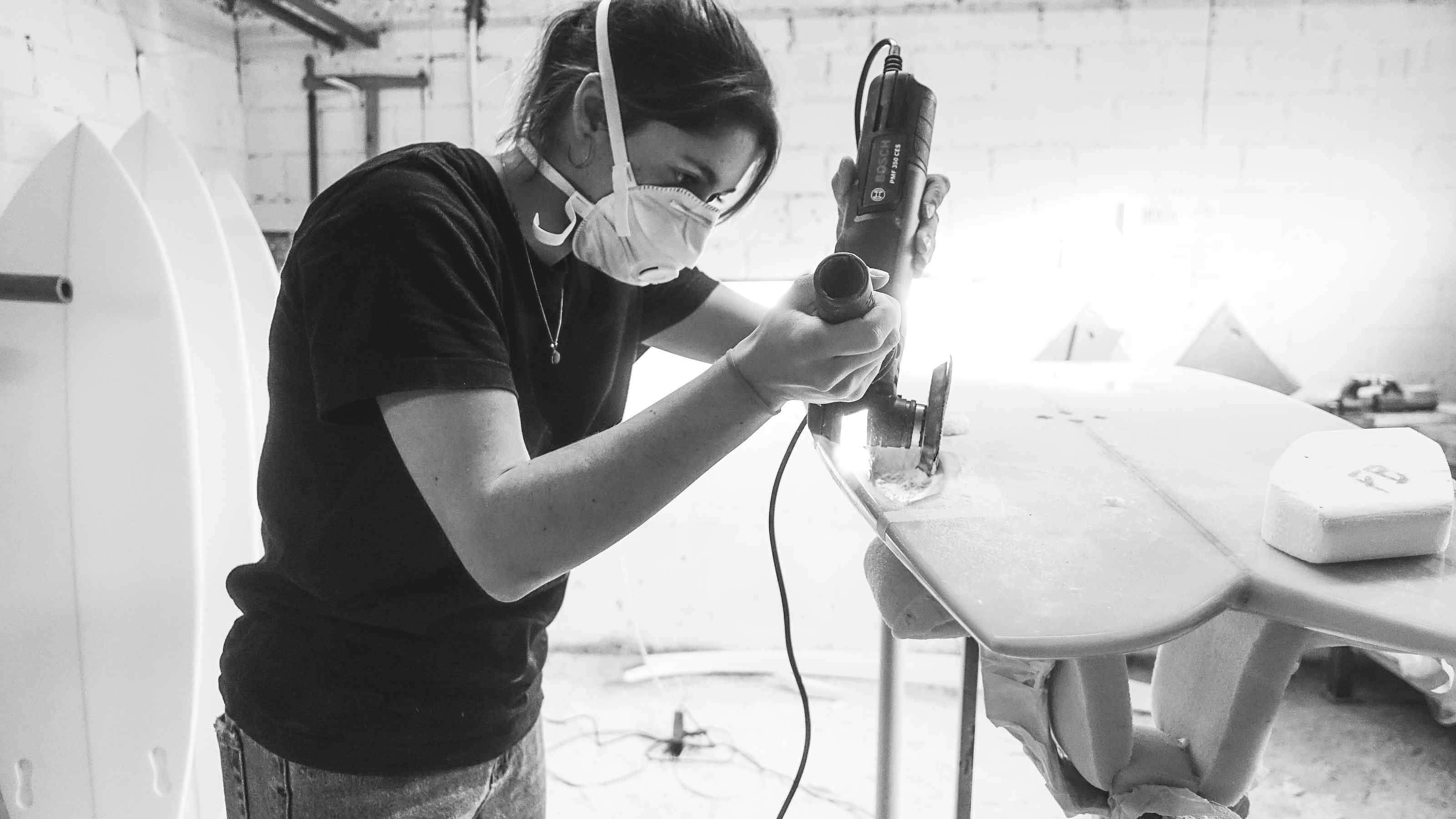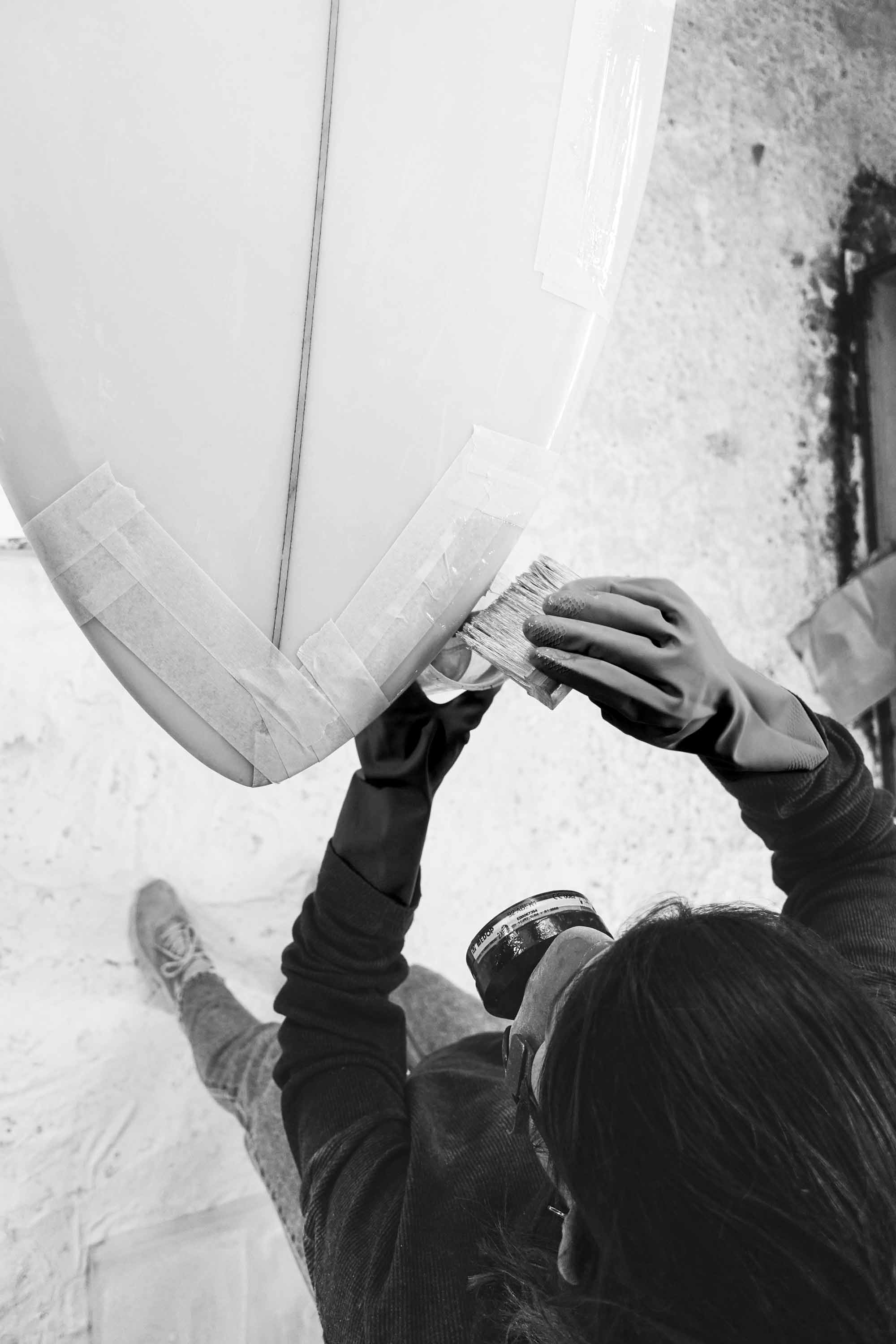 Surfboards are sensitive to impacts and can be patched with synthetic fibers and resin. Both small and complex repairs require know-how in the use of tools and the appropriate synthetic resins.